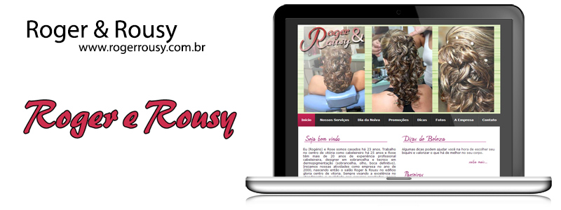 Website institucional do salão Roger & Rousy. O site contém os dados insitucionais, tabela de valores e serviços, dicas de beleza e saúde e álbuns de foto. O visual foi inspirado no ambiente do próprio salão.